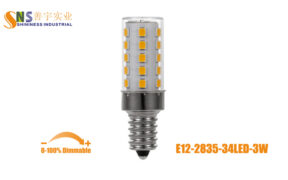 3W E12 socket LED Light Bulbs, Flicker free, use high quality 34pcs 2835SMD, 130Lm/W, Input voltage AC110-130V.
