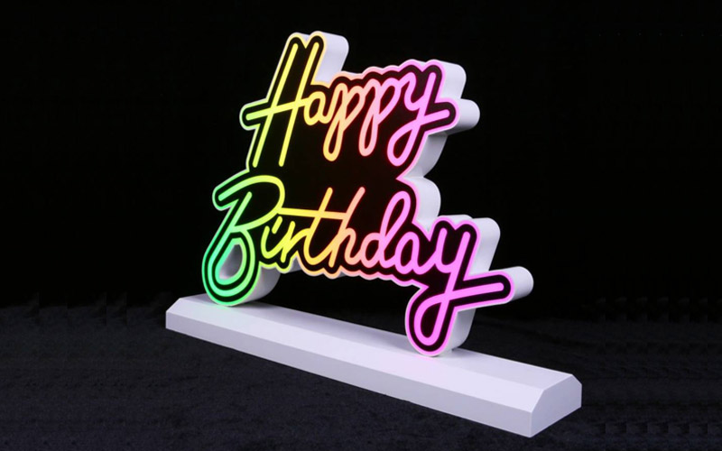Chasing Color Happy Birthday LED Sign, Input DC5-9V, use rechargeable battery, portable and versatile.