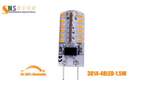 1.8W 160Lm G8 Light Bulbs, 0-100% Deep dimming, No flicker, Use 16pcs 2835SMD, Input voltage AC110-130V, 2 Years warranty.