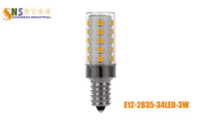 0-100% Deep dimming 3W E12 socket LED Light Bulbs, Flicker free, use high quality 34pcs 2835SMD, Input voltage AC110-130V.