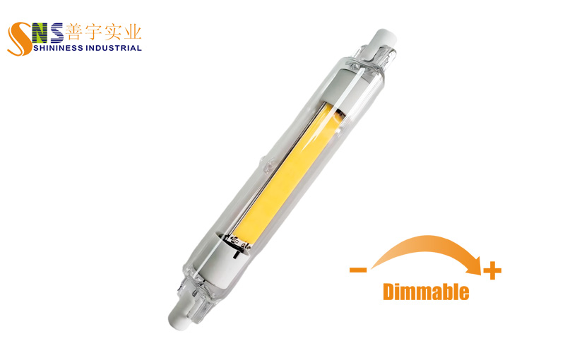 0-100% Dimmable 9W R7S LED light bulbs, 118mm length, Use good quality COB LED, No flicker, Input AC110-130V or AC220-240V.